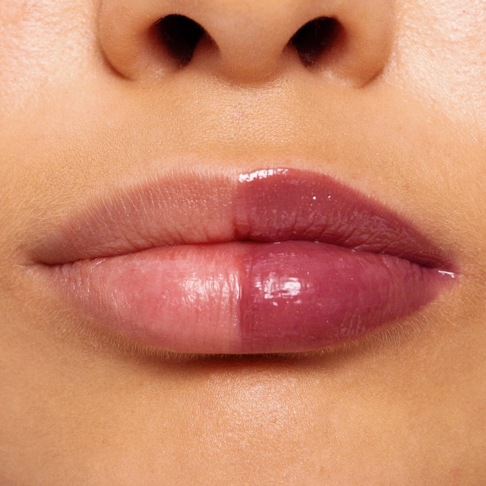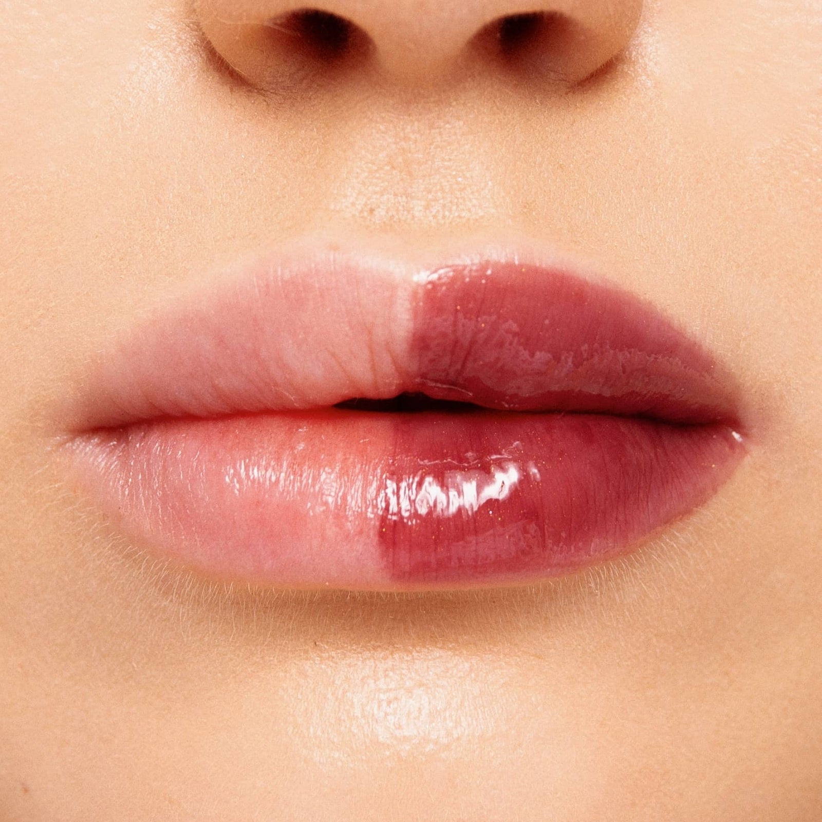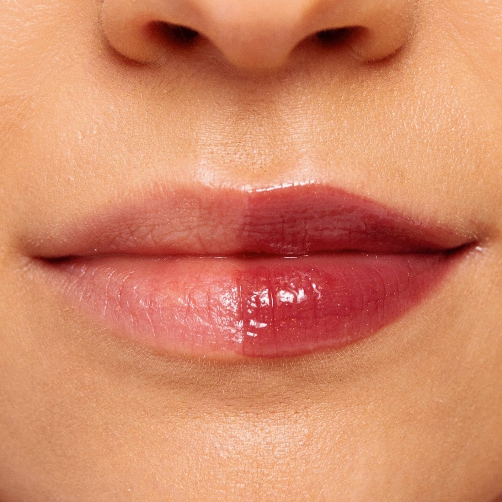 Juicy, coral shade. Wear as a lip tint or glossy lipstick.